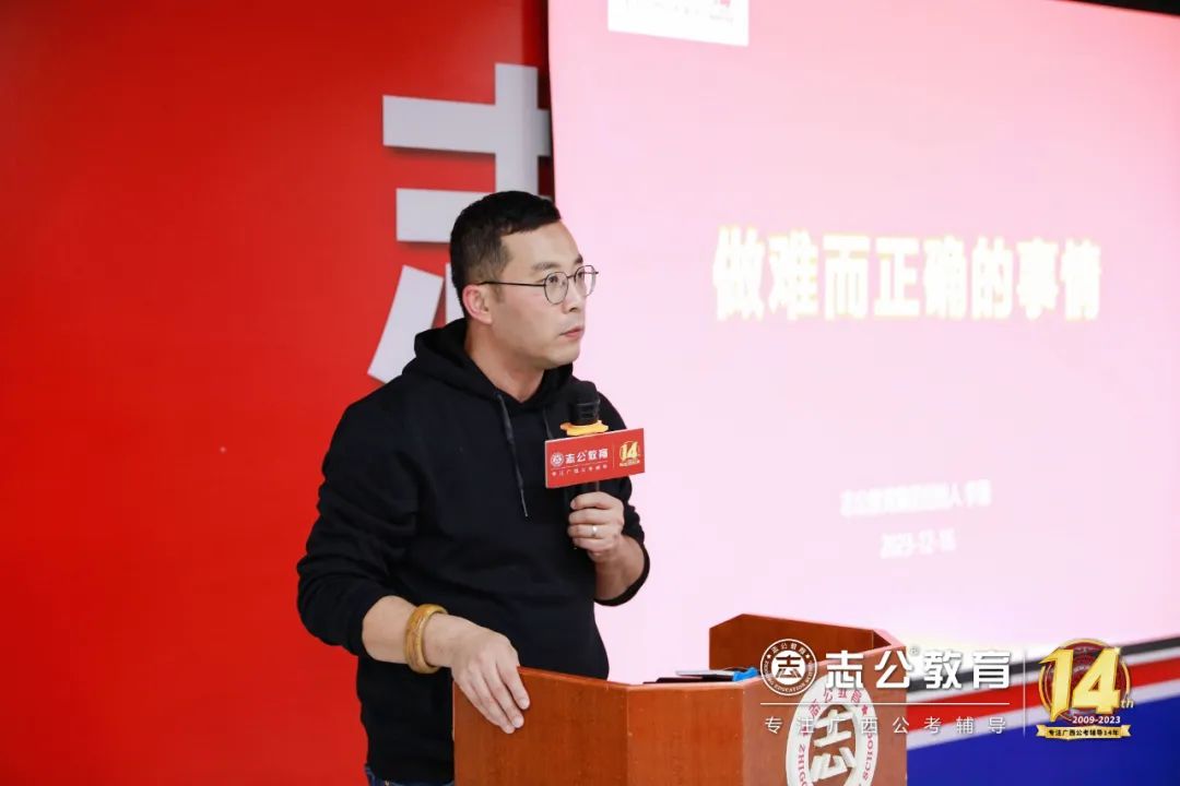 16日上午9點(diǎn)許,董事長(cháng)李勇發(fā)表致辭,他認為:“聚焦是一種力量”,對于志公教育而言,聚焦就是專(zhuān)注廣西公考輔導。