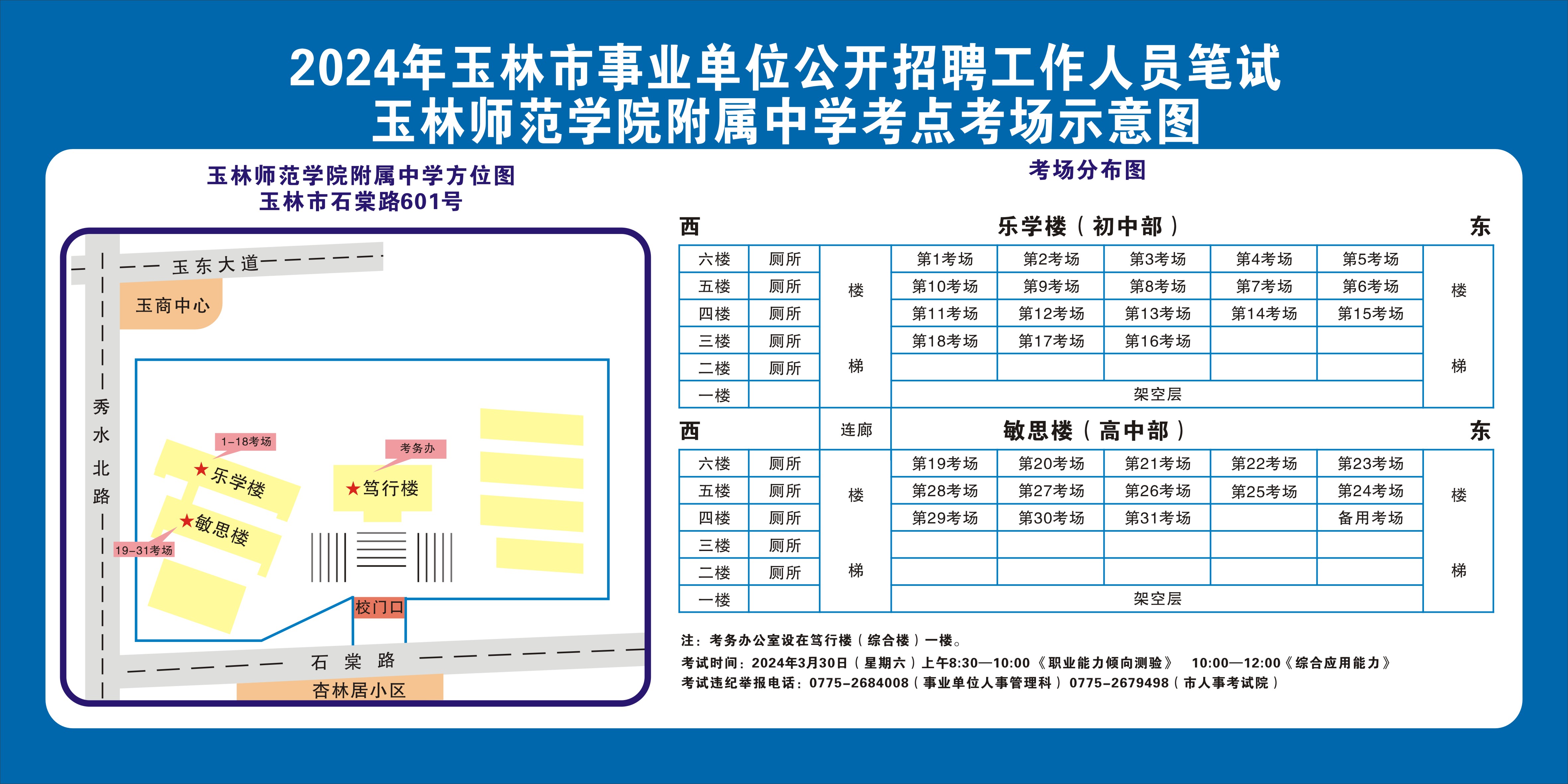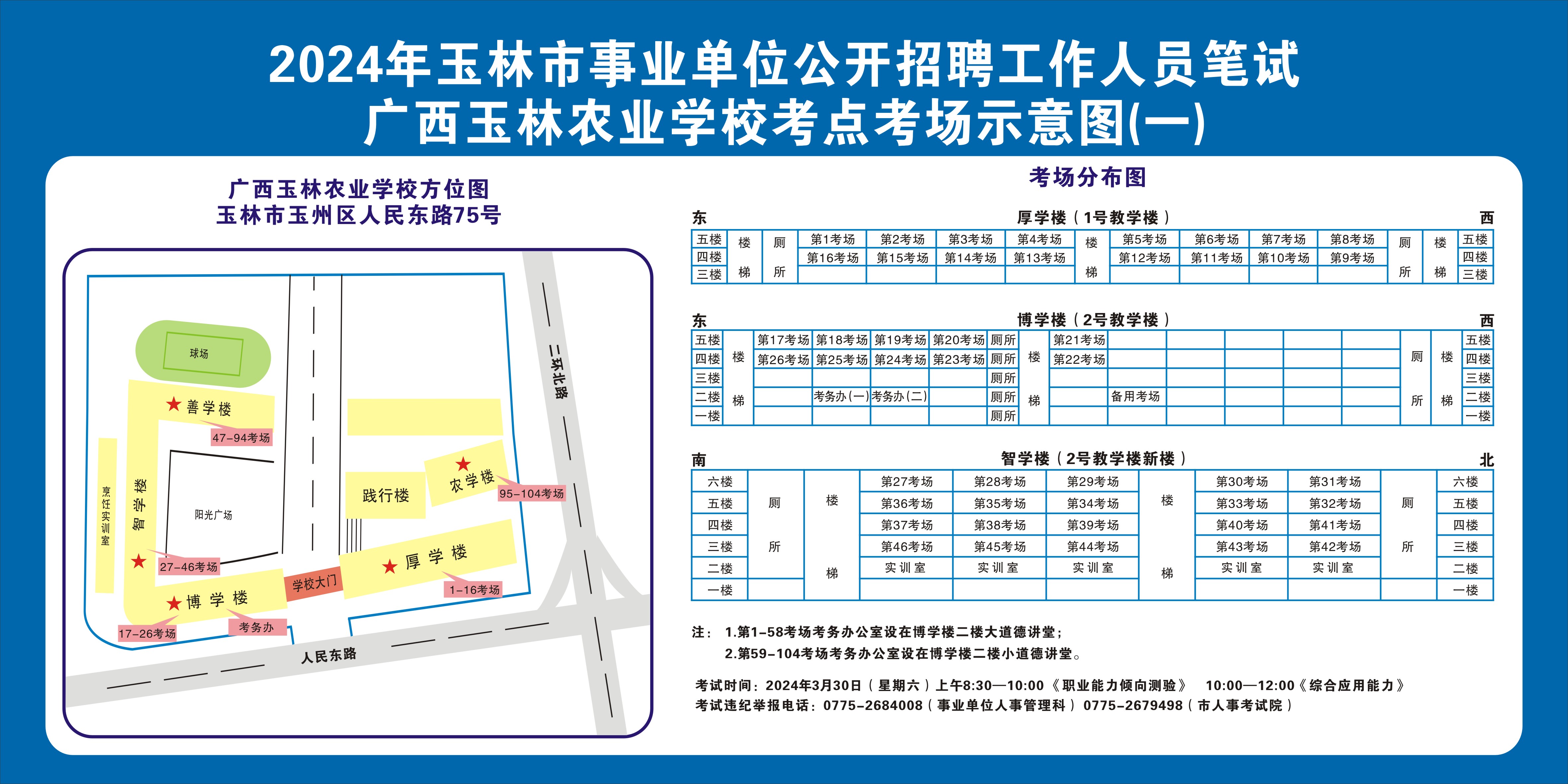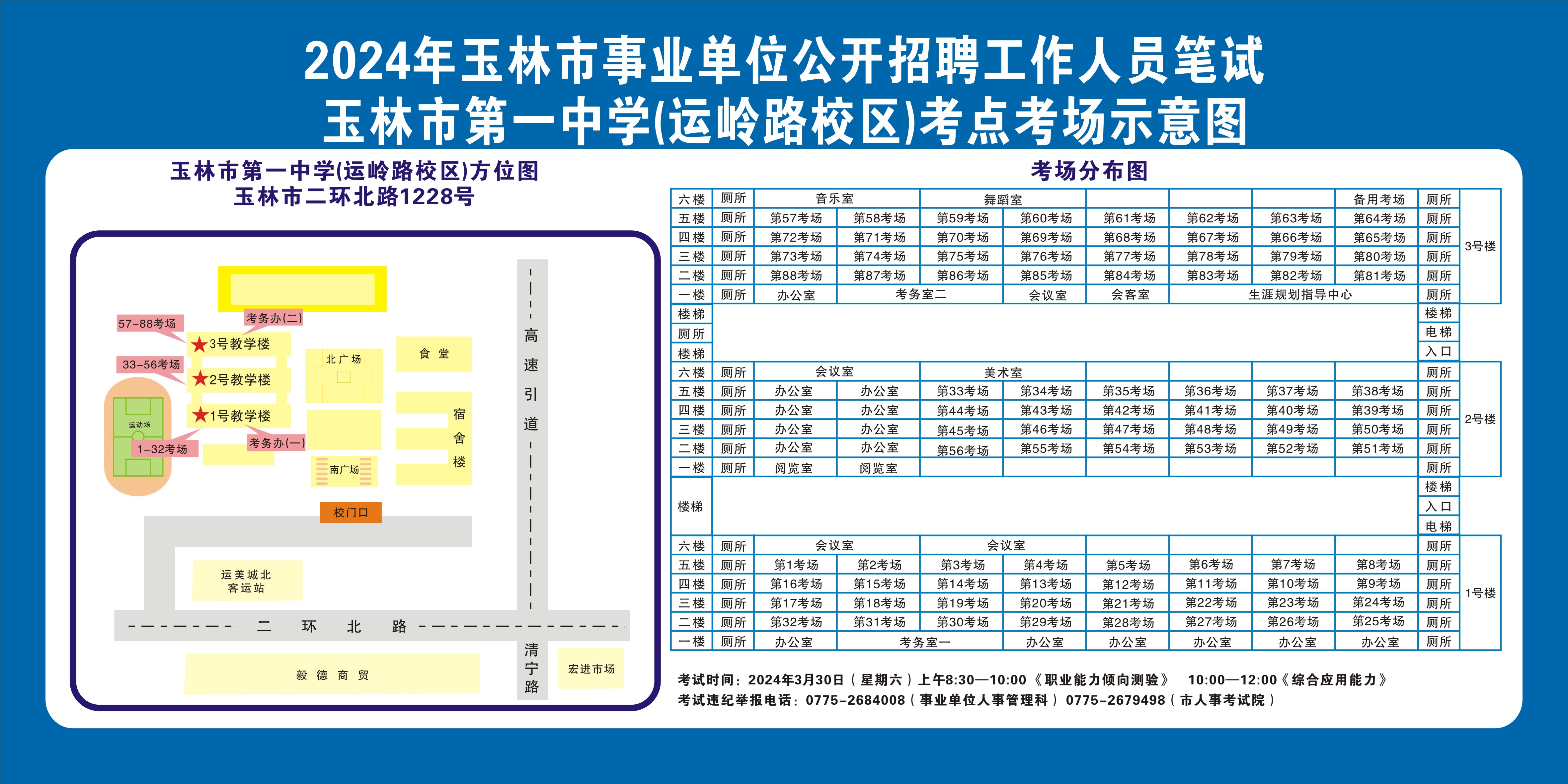 需要特別注意的是:玉林市第一職業(yè)中等專(zhuān)業(yè)學(xué)??键c(diǎn)是設在該校的東校區(人民東路東235號);玉林市第一中學(xué)考點(diǎn)是設在該校的運嶺路校區(二環(huán)北路1228號)!
