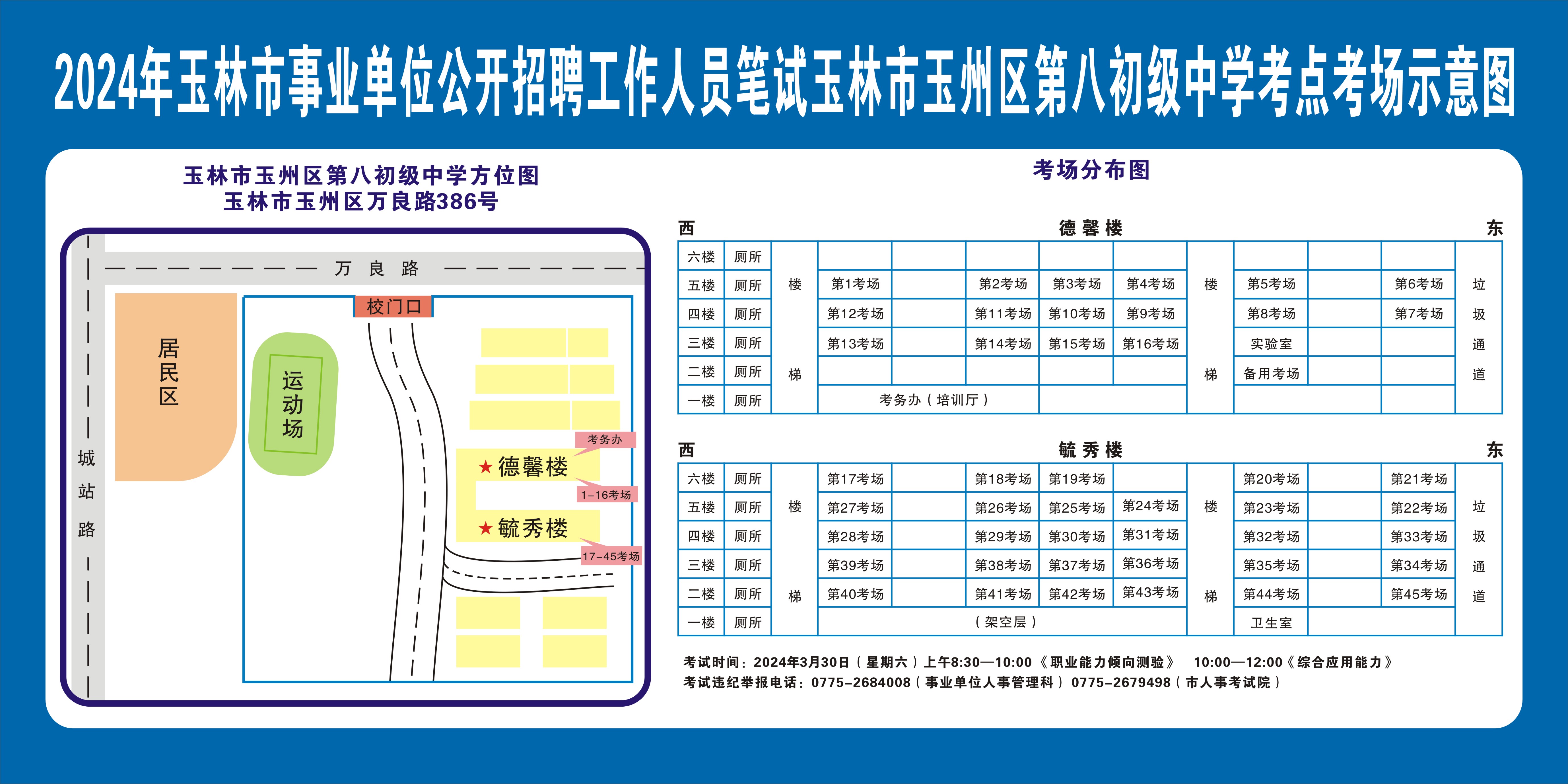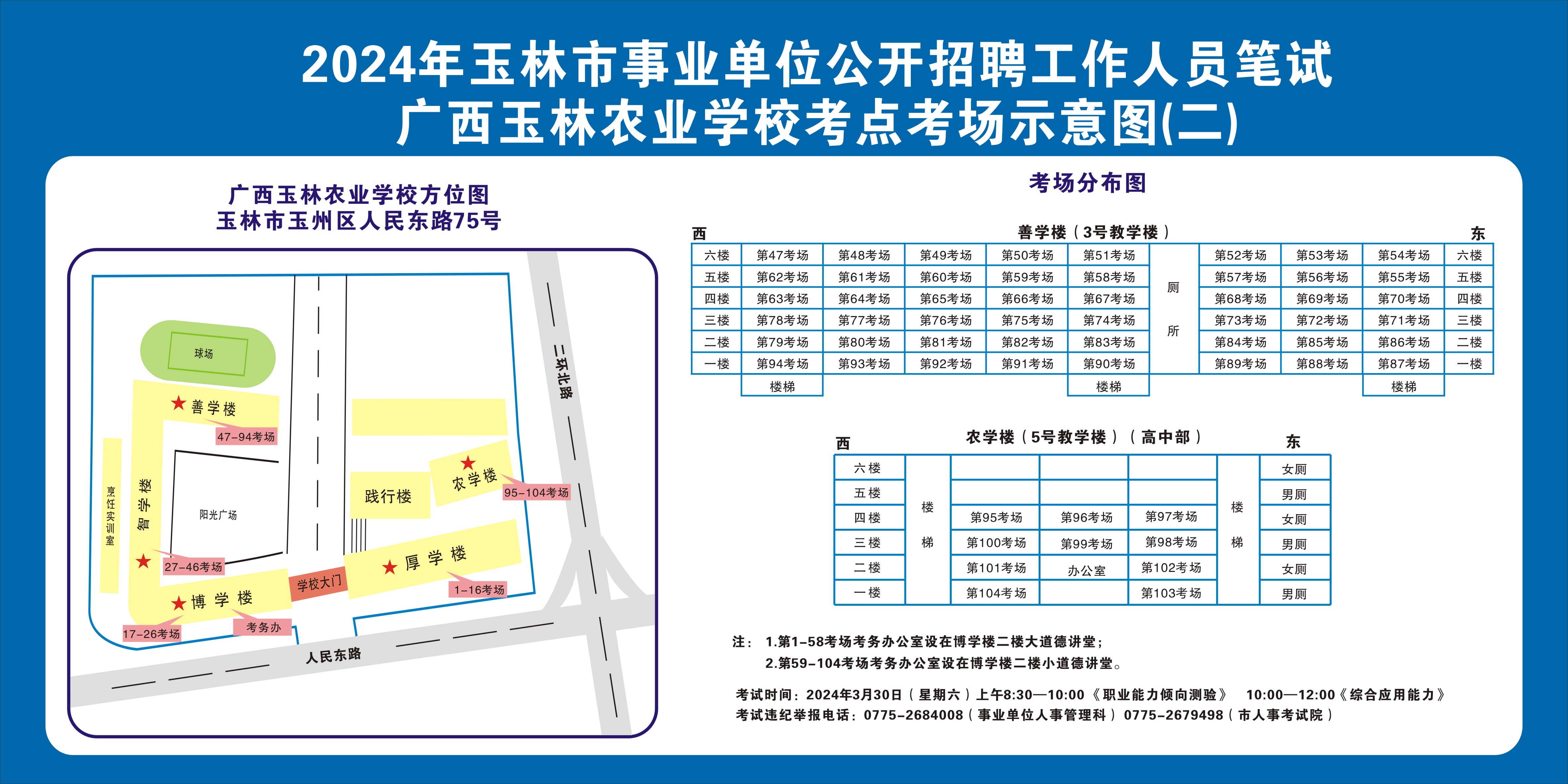 需要特別注意的是:玉林市第一職業(yè)中等專(zhuān)業(yè)學(xué)??键c(diǎn)是設在該校的東校區(人民東路東235號);玉林市第一中學(xué)考點(diǎn)是設在該校的運嶺路校區(二環(huán)北路1228號)!