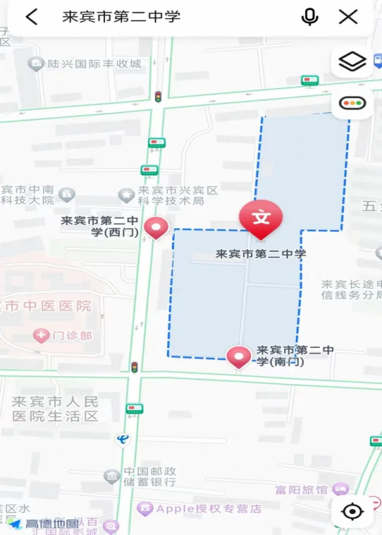 ▲來(lái)賓市第二中學(xué)交通指引圖(來(lái)賓市興賓區北四路62號)。