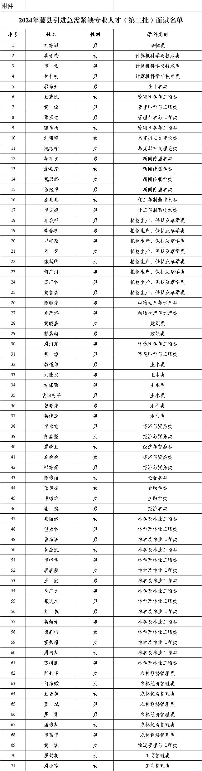 附件:2024年藤縣引進(jìn)急需緊缺專(zhuān)業(yè)人才(第二批)面試名單