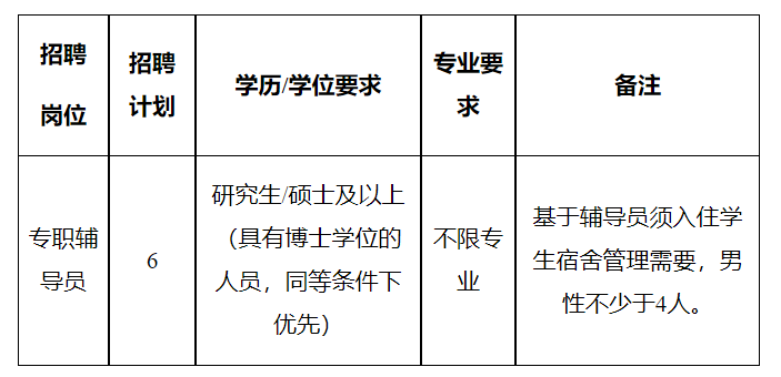 (四)年齡不超過(guò)30周歲,即1993年12月1日及之后出生;具有博士學(xué)位的,或具有高級職稱(chēng)的,或有專(zhuān)職輔導員工作經(jīng)驗且在各類(lèi)輔導員職業(yè)能力競賽、輔導員評優(yōu)評先等活動(dòng)中獲得過(guò)省部級(含)以上獎勵表彰者,年齡可放寬至35周歲,即1988年12月1日及之后出生。