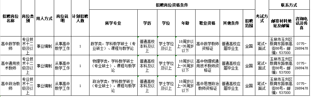 標明“事業(yè)編制”崗位招聘的教師納入編制管理,由玉林市財政統一發(fā)放工資,依法享受?chē)?、廣西壯族自治區和玉林市規定的教師待遇。