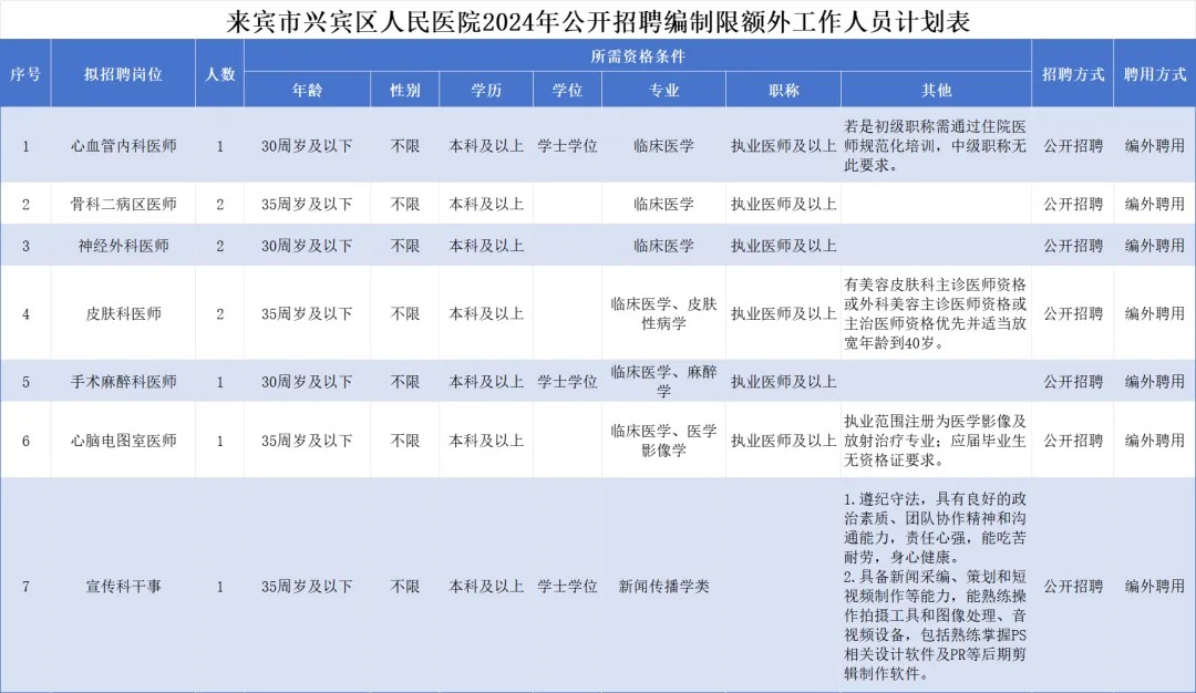 原文標題:速看!來(lái)賓市興賓區人民醫院招聘編制限額外工作人員10名
