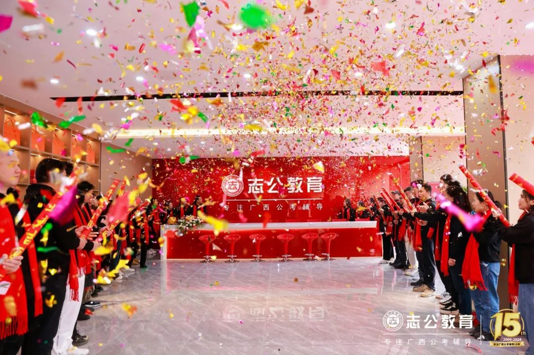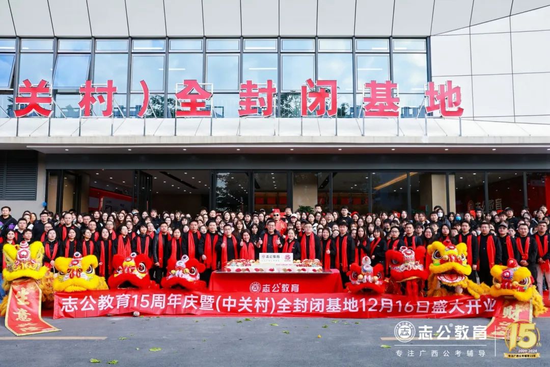 12月16日上午八點(diǎn),位于南寧市西鄉塘區蘆村嶺路112號南寧中關(guān)村電子信息產(chǎn)業(yè)園二期5號樓志公教育(中關(guān)村)全封閉基地迎來(lái)了志公教育集團全體員工,陽(yáng)光明媚,溫暖宜人,在南寧這座冬天也會(huì )花開(kāi)的城市,我們迎來(lái)了志公教育十五周年慶暨志公教育(中關(guān)村)全封閉基地開(kāi)業(yè)典禮。