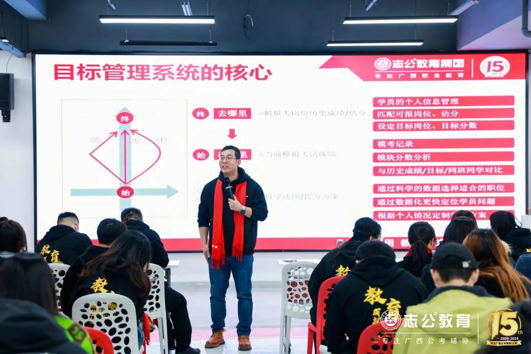 第一是極致本土化,董事長(cháng)李勇表示這是志公教育集團安身立業(yè)的根本,他表示這要求對廣西公職考試響應速度要快,針對廣西的考情和學(xué)情,研發(fā)產(chǎn)品教學(xué)方法和課程資料,這是對教研院的考驗,明確表示未來(lái)要把錢(qián)投在學(xué)員的服務(wù)上、老師的數量、學(xué)習班主任。志公教育現在有志公教育(保稅區)全封閉基地,志公教育(中關(guān)村)全封閉基地,未來(lái)希望在桂林,柳州,百色等地也建立基地,讓志公教育在八桂大地生根,實(shí)現各美其美,美美與共。