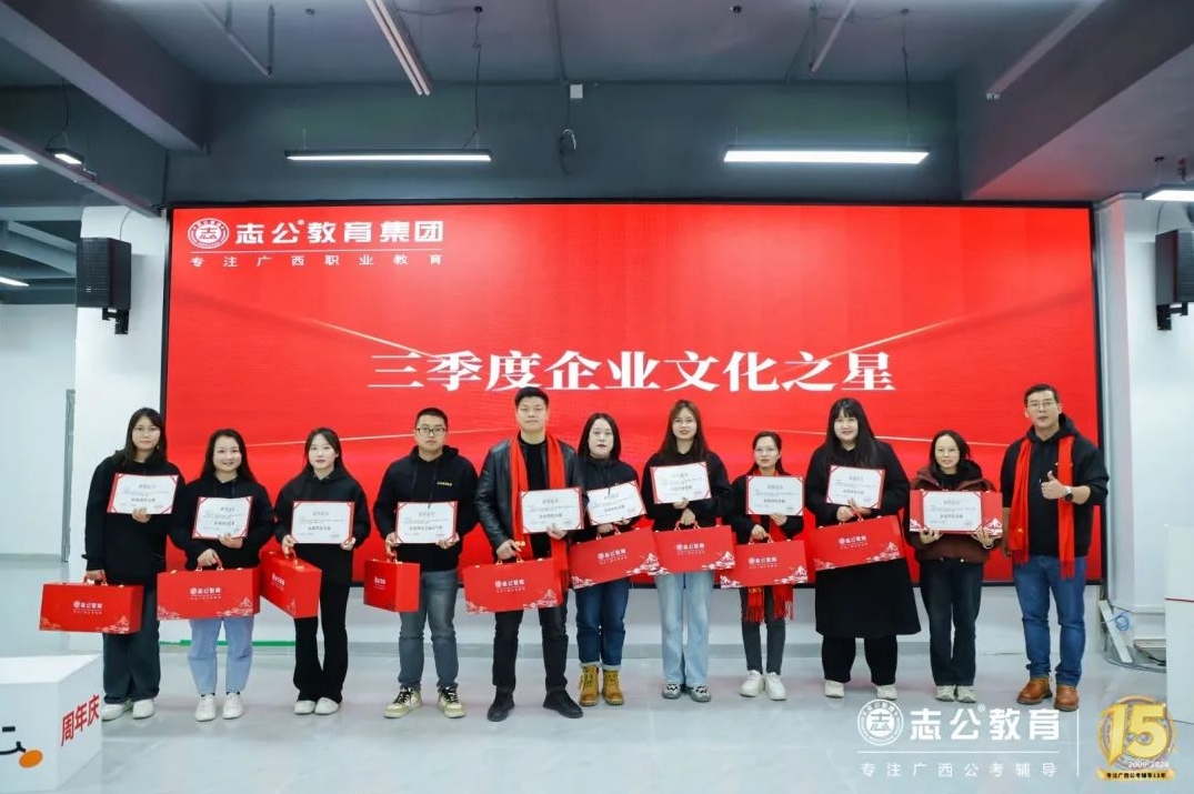 一直以來(lái),志公教育都秉承著(zhù)“12條企業(yè)文化核心價(jià)值觀(guān)”,包括客戶(hù)原則——以學(xué)員為中心”、“管理原則——人人都是經(jīng)營(yíng)者”等12項原則,扎根廣西本土公考,全力服務(wù)每一位志公學(xué)員。在董事長(cháng)李勇的正確領(lǐng)導下,在廣大學(xué)員的支持下,在全體員工的共同努力下,志公教育從無(wú)到有,從小到大,不斷夯實(shí)發(fā)展基礎,贏(yíng)得了客戶(hù)的信賴(lài)和品牌形象。全體志公人將堅定目標齊奮斗、凝心聚力再出發(fā),為志公高質(zhì)量發(fā)展再立新功。