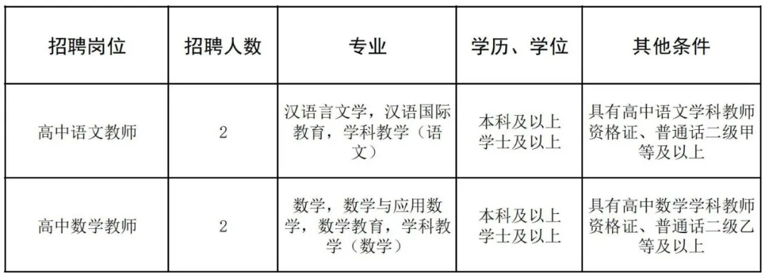 根據發(fā)展需要,學(xué)校擬招聘高中語(yǔ)文、高中數學(xué)頂崗教師共4人,具體招聘信息如下: