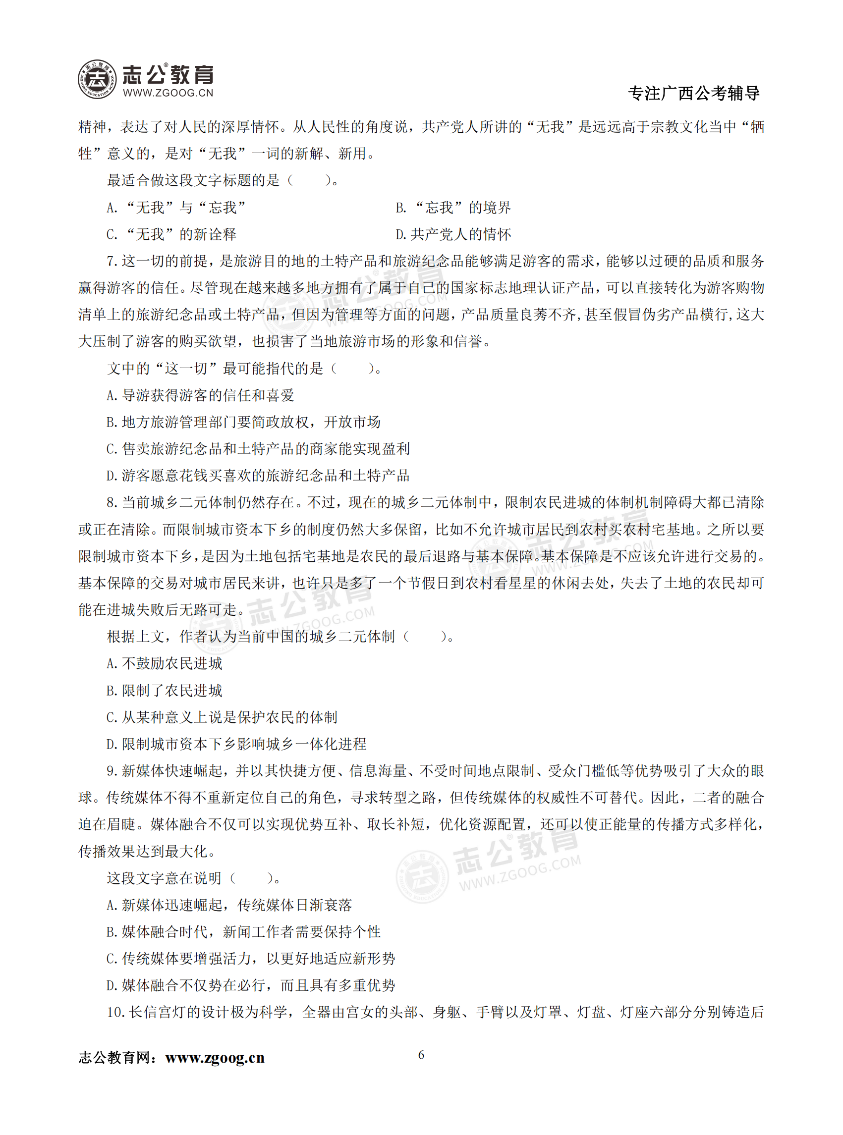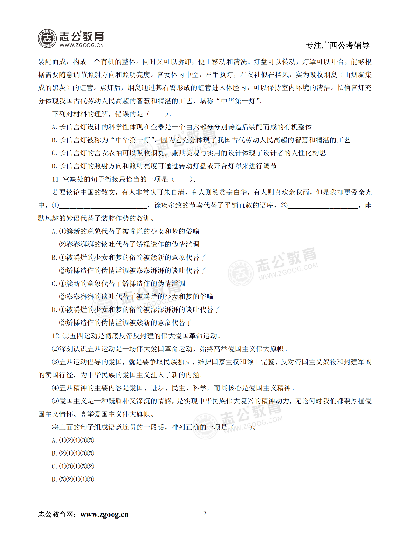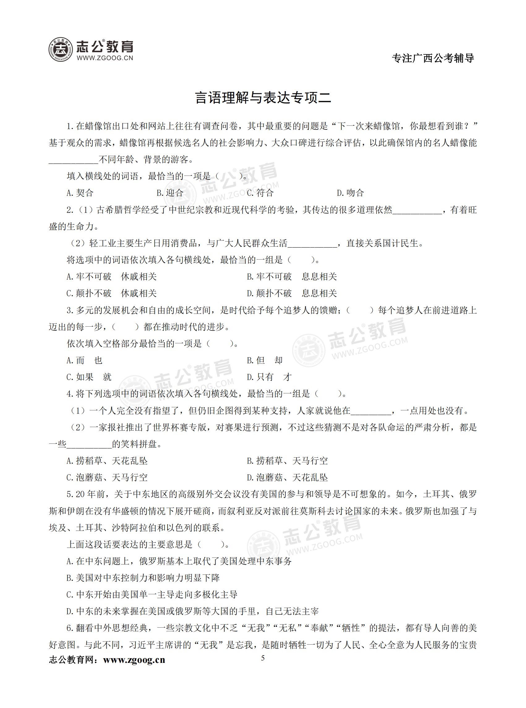 【公考模塊練習】言語(yǔ)理解題二(試題)