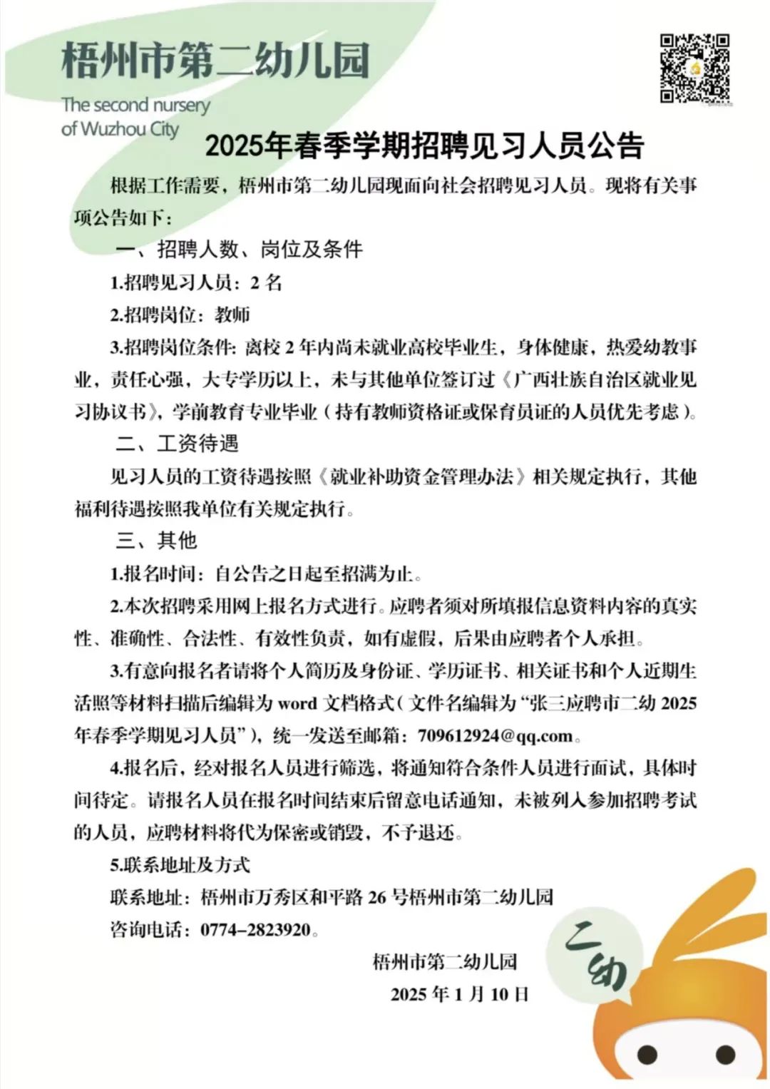 2025年梧州市第二幼兒園春季學(xué)期招聘見(jiàn)習人員公告