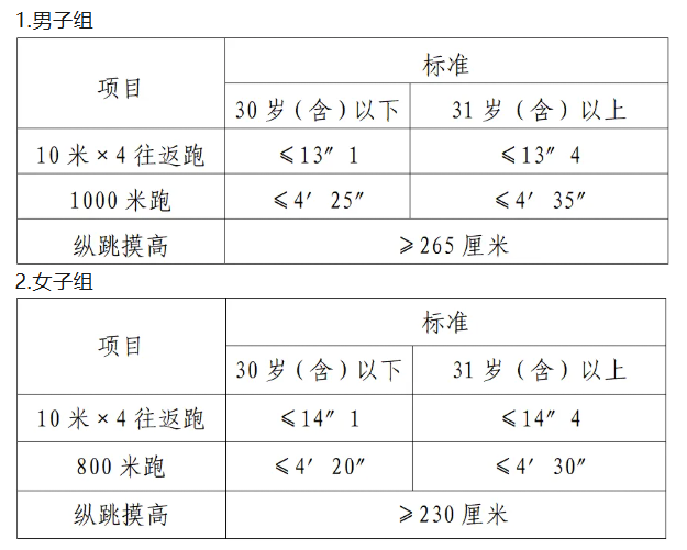 參加體能測評人員為筆試考試成績(jì)合格的考生。體能測評的標準:參照《關(guān)于印發(fā)公安機關(guān)錄用人民警察體能測評項目和標準(暫行)的通知》(人社部發(fā)〔2011〕48號)的標準。