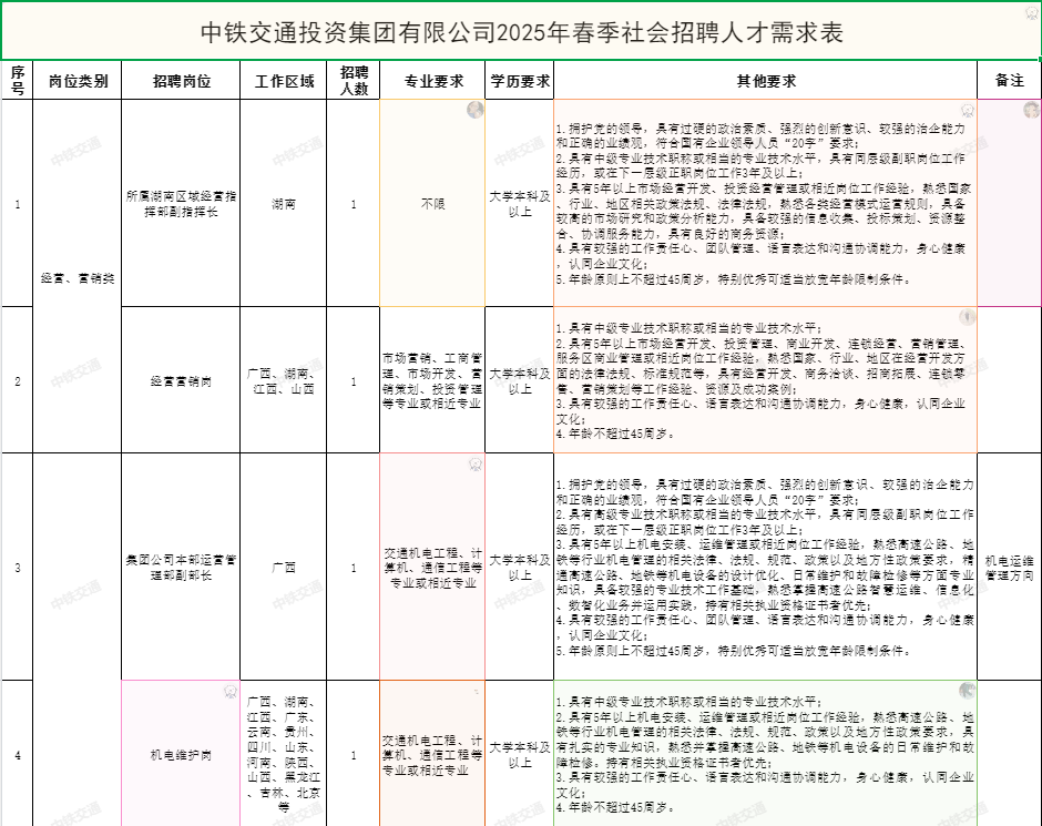 附件1:中鐵交通投資集團有限公司2025年春季社會(huì )招聘人才需求表