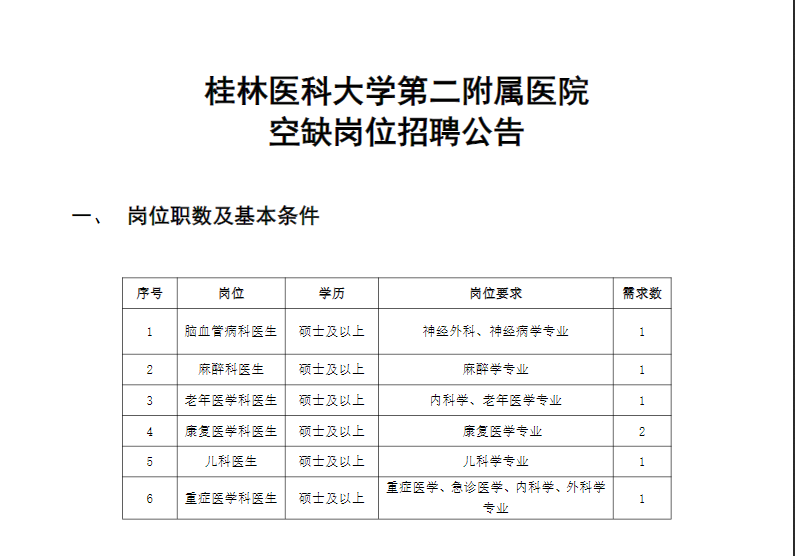 原文標題:桂林醫科大學(xué)第二附屬醫院空缺崗位招聘公告2025年5月12日