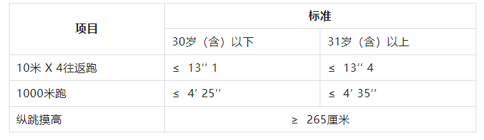 報考人員須參加全部三項體能測評。參加者凡有其中一項不達標或放棄,視為體能測評不合格。體能測評合格,方可進(jìn)入下一環(huán)節。