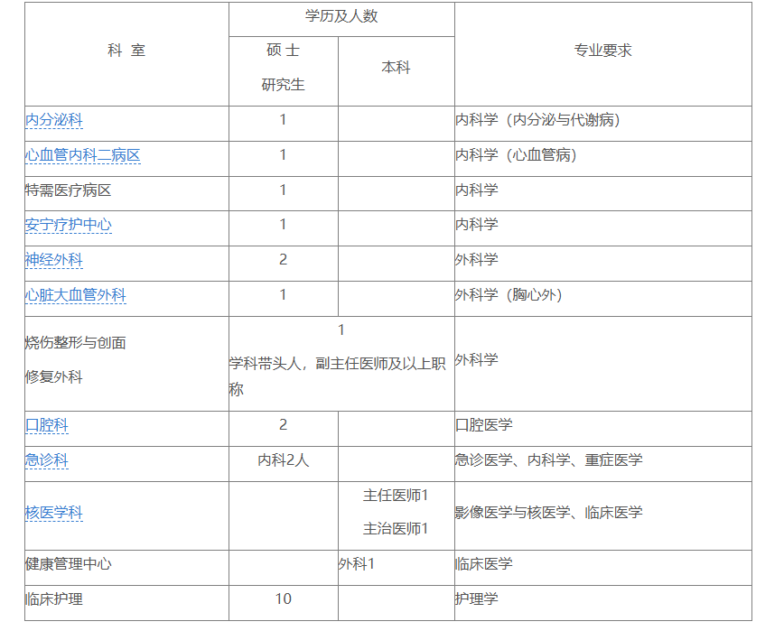 醫院長(cháng)期招聘各臨床專(zhuān)業(yè)博士,人數不限。