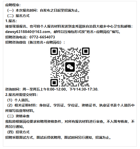 2025年廣西來(lái)賓市金秀瑤族自治縣大樟鄉中心衛生院公開(kāi)招聘人才1人