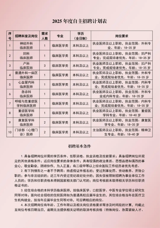 原文標題:融水苗族自治縣人民醫院2025年自主招聘計劃表