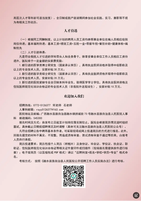 2025年廣西柳州融水苗族自治縣人民醫院招聘若干人