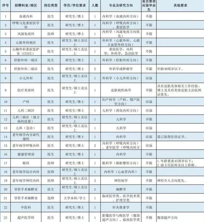 博士崗位:全年長(cháng)期招聘(我院將根據報名情況分批次安排面試,具體以醫院通知為準),崗位招滿(mǎn)即關(guān)閉報名通道。