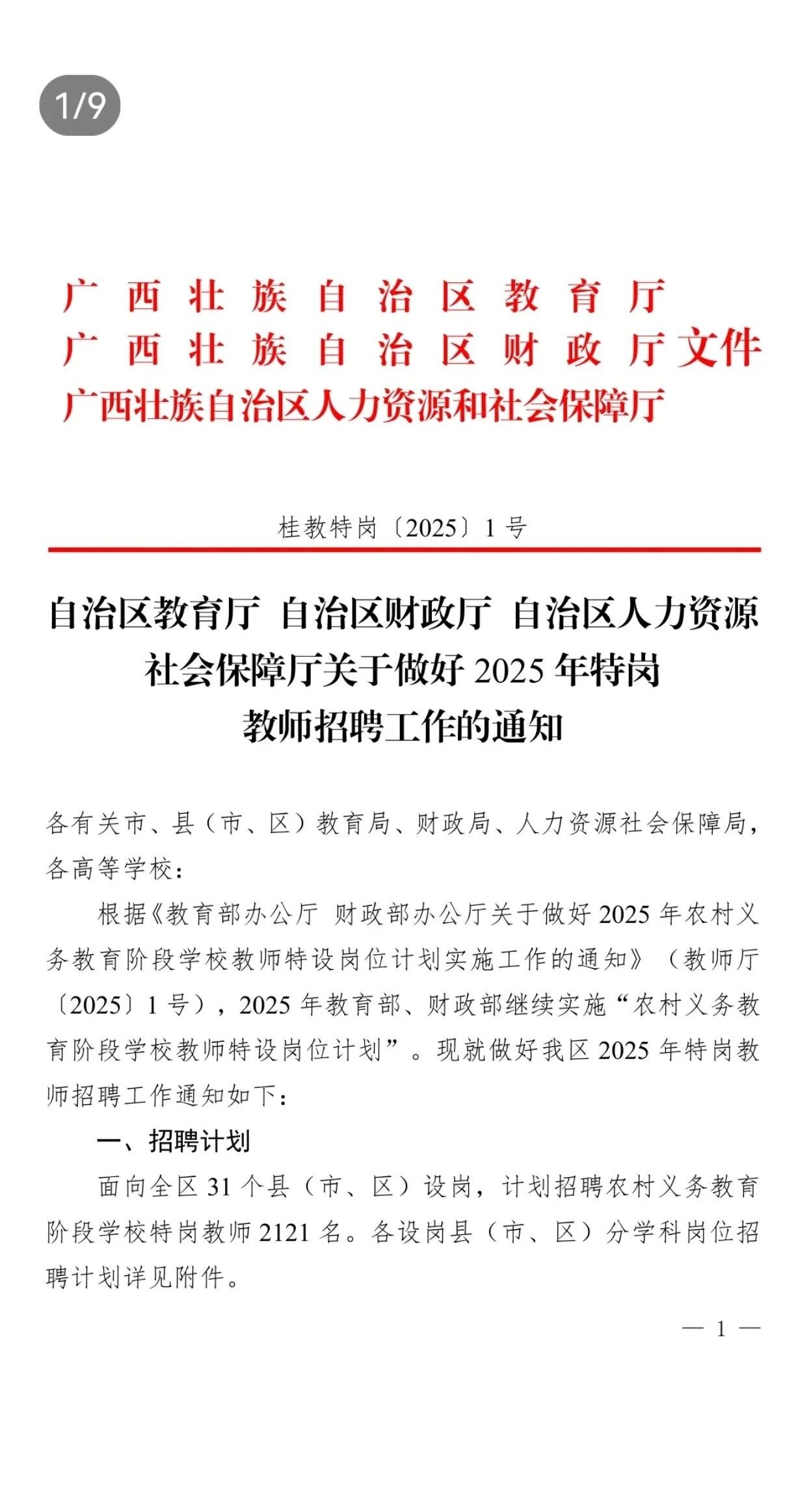原文標題:廣西2025年特崗教師招聘2121人!各地市崗位表已出!