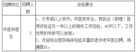 我院因業(yè)務(wù)發(fā)展需要,決定面向社會(huì )公開(kāi)招聘中醫科醫生2人,現將有關(guān)事項公告如下: