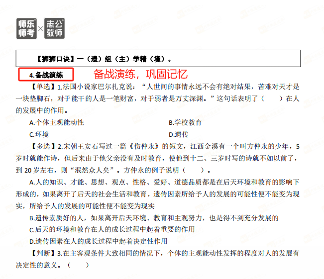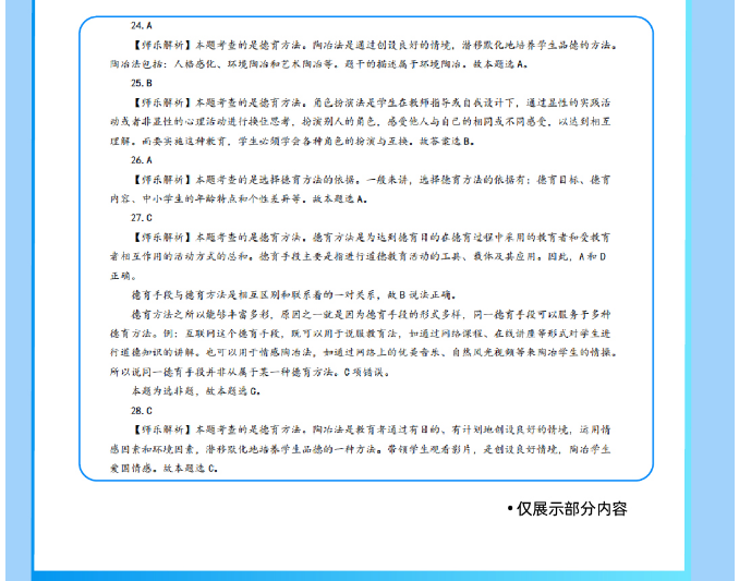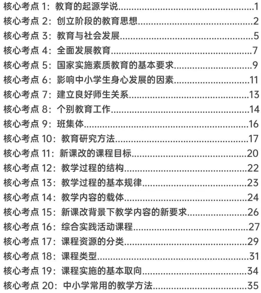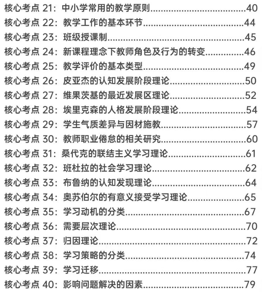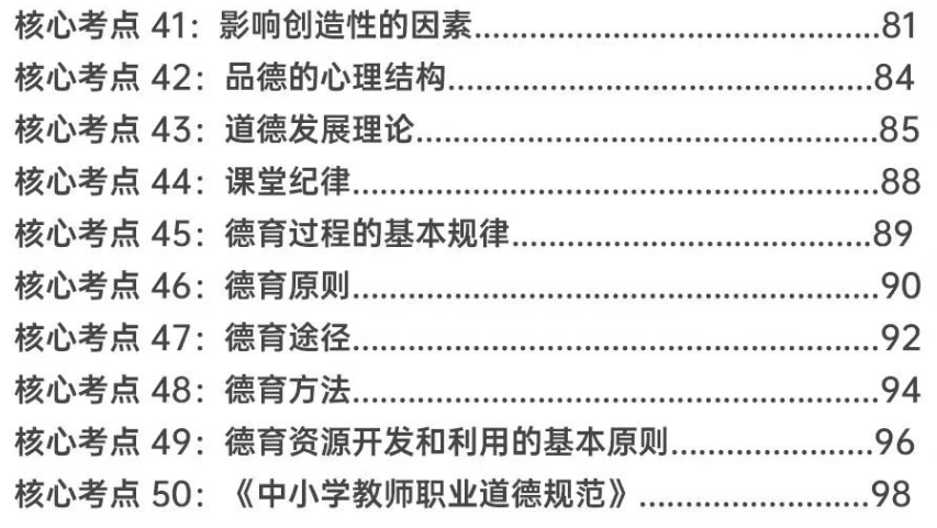 匹配考綱要求,精選50個(gè)核心考點(diǎn):銘師組團精研,基于考綱收錄《教育學(xué)與教學(xué)法基礎知識》《教育心理學(xué)與德育工作基礎知識》核心考點(diǎn),重點(diǎn)突出,幫助考生學(xué)習記憶。