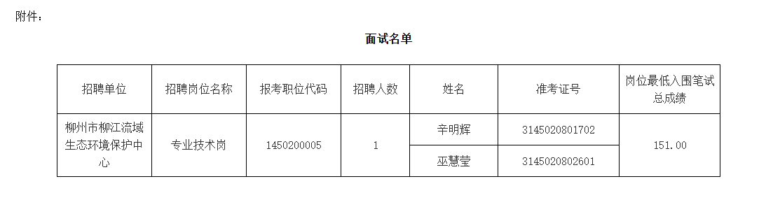 根據《柳州市2025年度上半年事業(yè)單位公開(kāi)考試招聘工作人員公告》、《關(guān)于印發(fā)〈廣西壯族自治區事業(yè)單位公開(kāi)招聘工作人員面試工作規則(試行)〉的通知》(桂人社發(fā)〔2012〕79號)的規定,2025年柳州市生態(tài)環(huán)境局擬組織所屬事業(yè)單位公開(kāi)考試招聘工作人員面試,現將相關(guān)事宜公告如下: