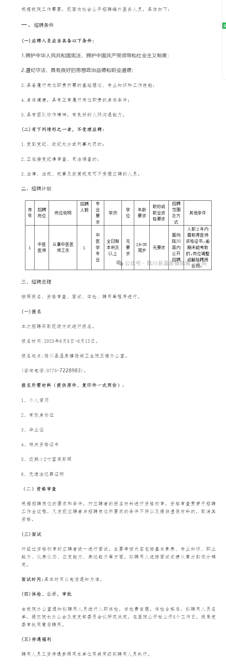 原文標題:陸川縣溫泉鎮陸城衛生院公開(kāi)招聘編外醫務(wù)人員公告