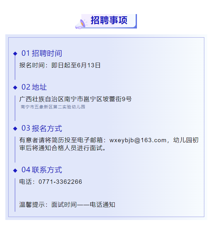 原文標題:南寧市五象新區第二實(shí)驗幼兒園招聘公告