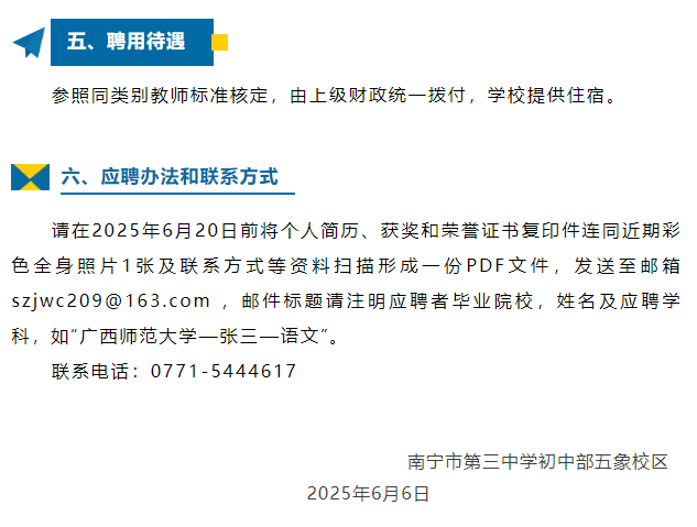 南寧市第三中學(xué)初中部五象校區2025-2026學(xué)年臨聘教師招聘啟事