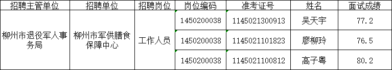 2025年柳州市事業(yè)單位公開(kāi)考試招聘工作人員面試成績(jì)