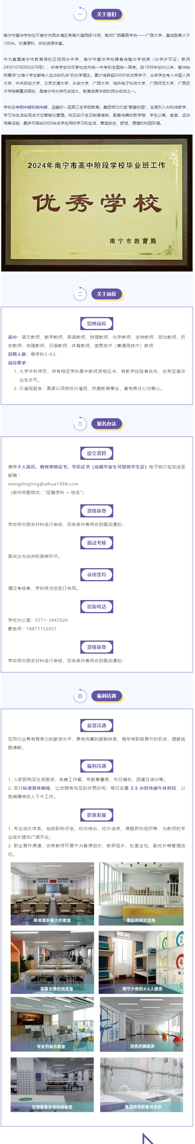 南寧市愛(ài)華學(xué)校2025年秋季學(xué)期高中教師招聘公告