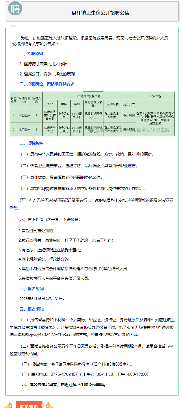 貴港市港南區湛江鎮衛生院公開(kāi)招聘編外人員的公告