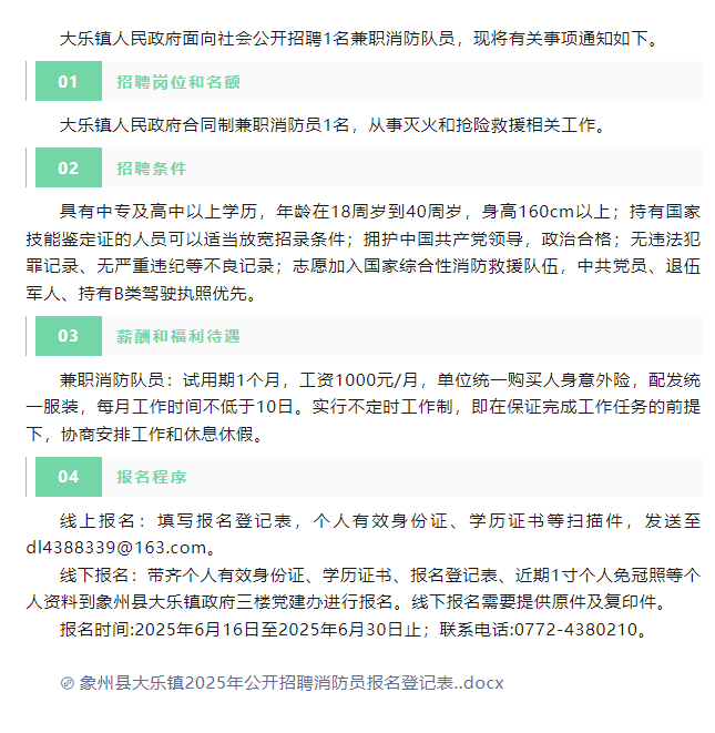 原文標題:大樂(lè )鎮招聘消防隊員公告