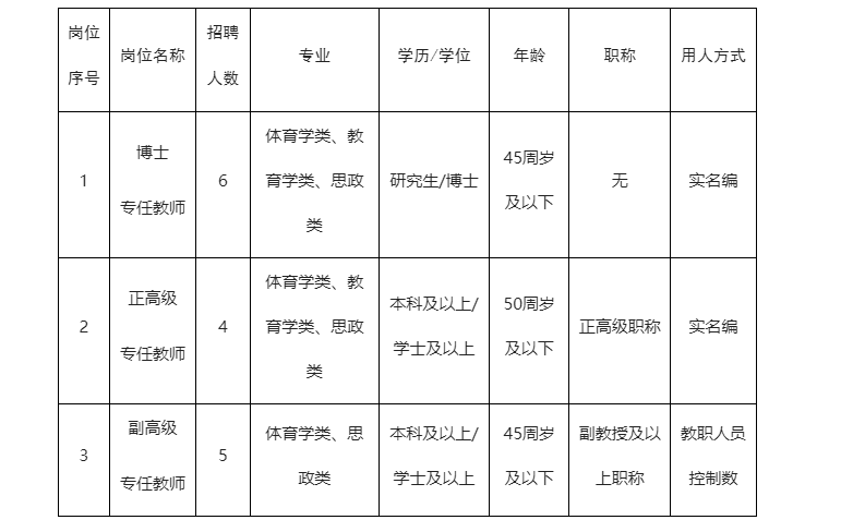 2.報名方法:采用網(wǎng)上報名,符合崗位應聘條件人員,請填寫(xiě)《廣西體育高等專(zhuān)科學(xué)校2025年應聘報名登記表》(見(jiàn)附件),并連同求職材料一并打包壓縮后發(fā)送至人事處郵箱:gxtzzzrsc@126.com,郵件和附件名稱(chēng)統一命名為“高層次人才+博士/正高/副教授+姓名”。應聘者須按照要求提交報名材料,不按照要求提交者將視為無(wú)效報名,資格審查不予通過(guò)。
