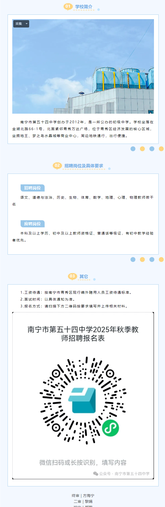 原文標題:南寧市第五十四中學(xué)2025年秋季學(xué)期招聘