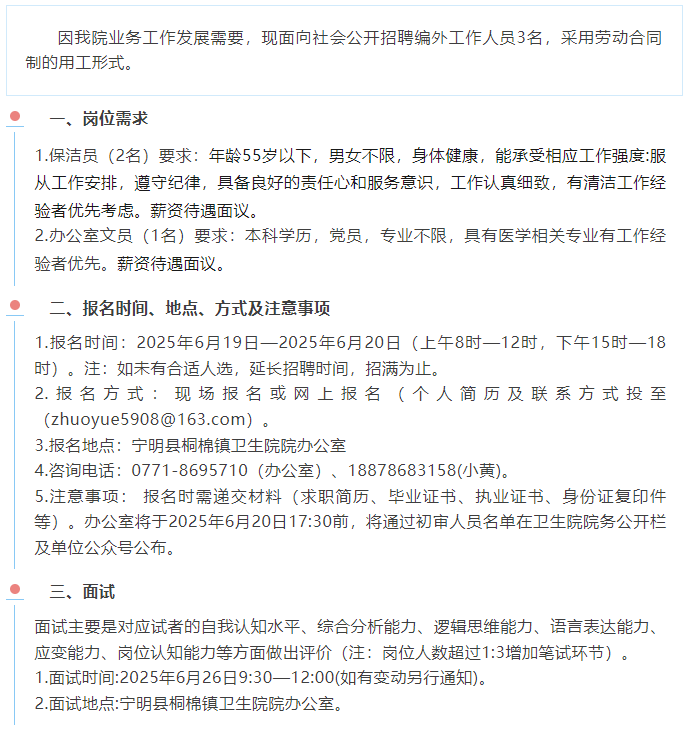 原文標題:寧明縣桐棉鎮衛生院招聘公告