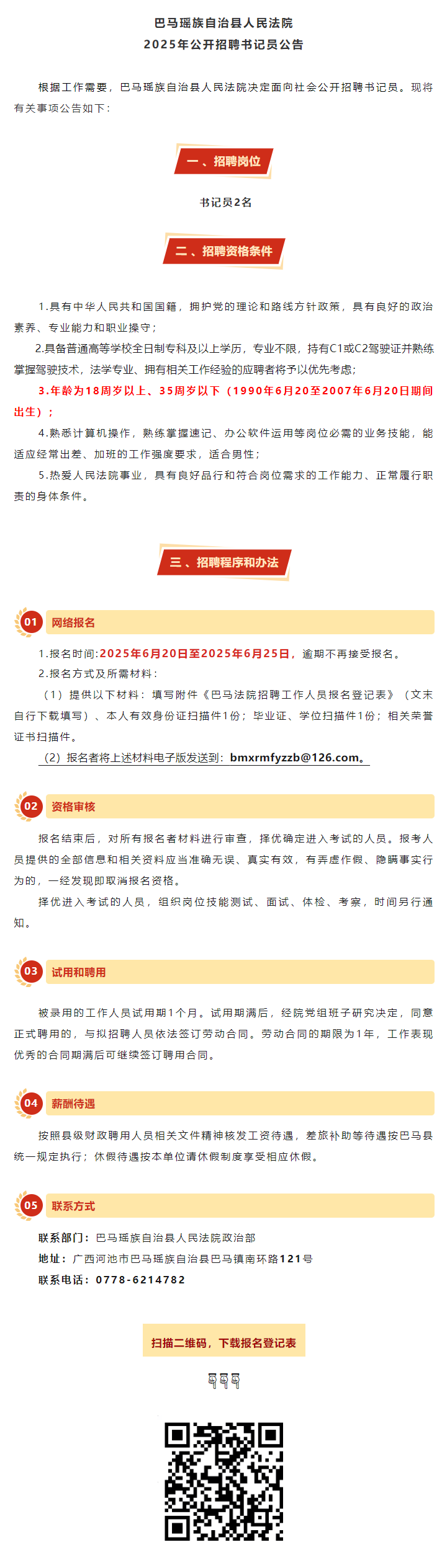 2025年巴馬瑤族自治縣人民法院公開(kāi)招聘書(shū)記員2人