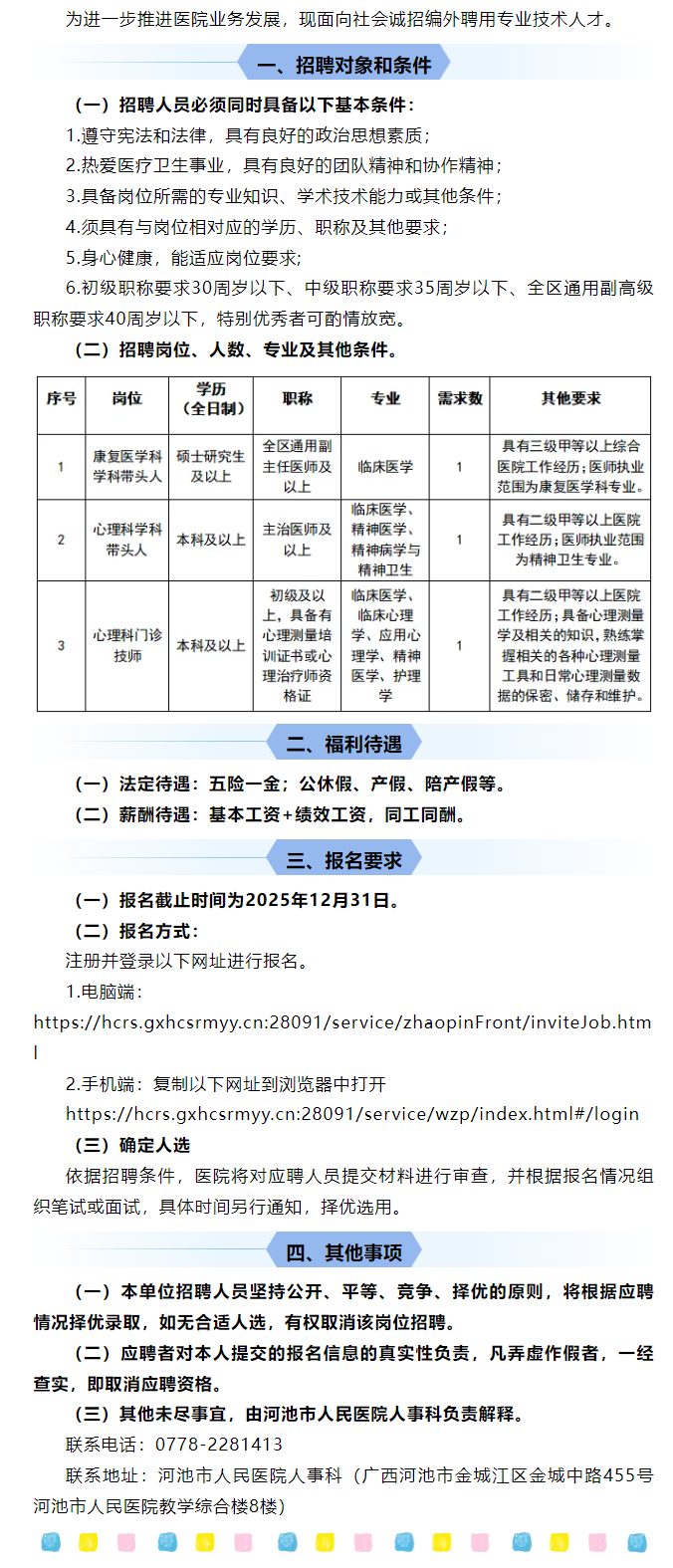 2025年河池市人民醫院公開(kāi)招聘康復醫學(xué)科、心理科專(zhuān)業(yè)技術(shù)人才