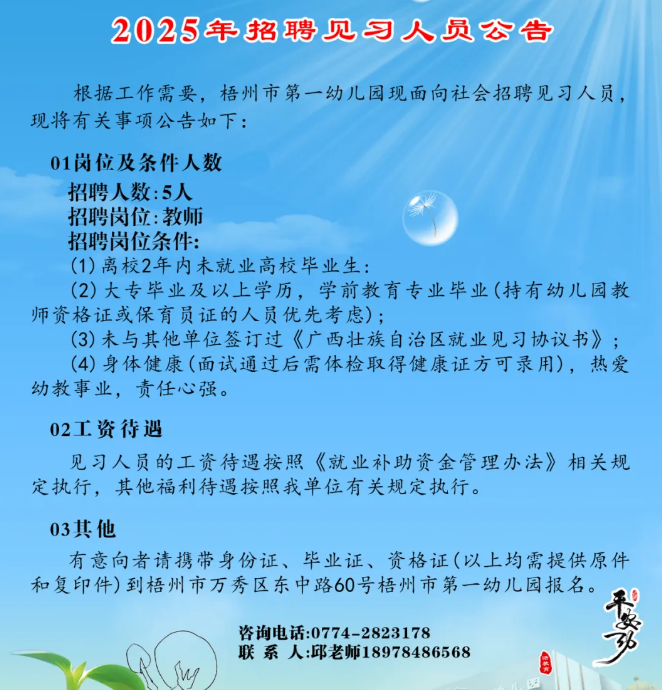 2025年梧州市第一幼兒園招聘見(jiàn)習人員公告