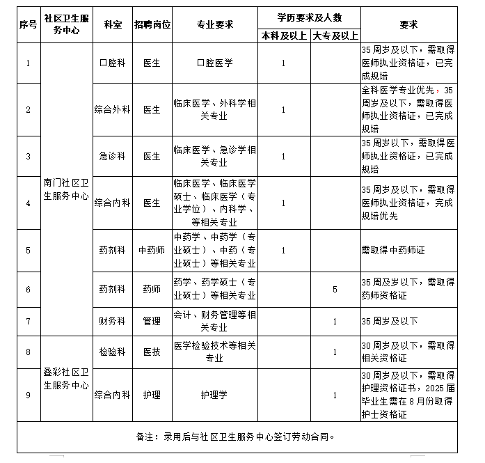根據社區衛生服務(wù)中心工作需要,現將2025年度(第二批)招聘崗位及有關(guān)事項公布如下: