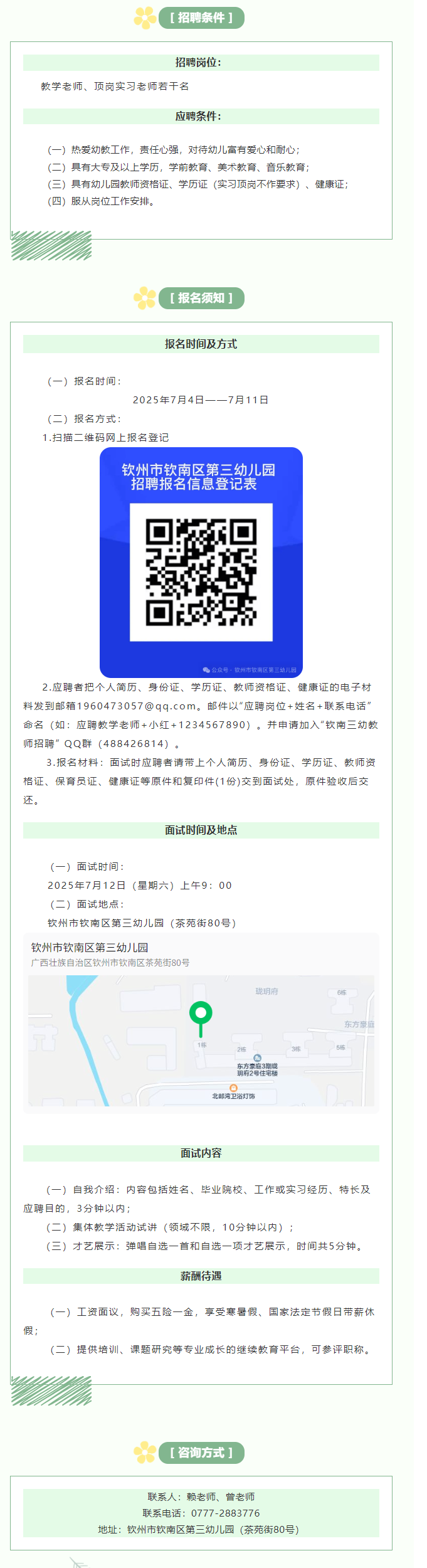 2025年欽州市欽南區第三幼兒園秋招聘教學(xué)老師、頂崗實(shí)習老師公告