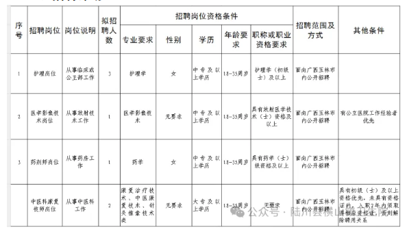 因工作需要,陸川縣橫山鎮衛生院向社會(huì )公開(kāi)招聘編外工作人員。具體招聘事宜如下: