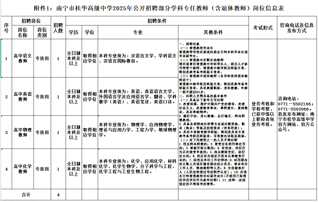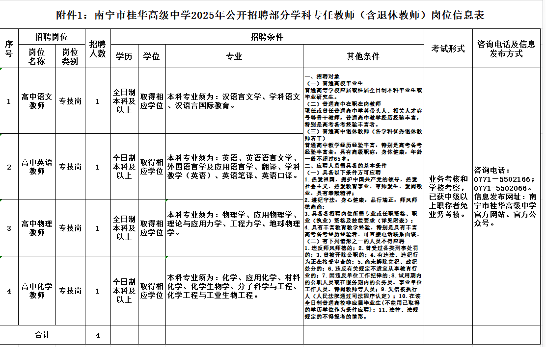 附件1:《南寧市桂華高級中學(xué)公開(kāi)招聘專(zhuān)任教師(含退休教師)崗位信息表》