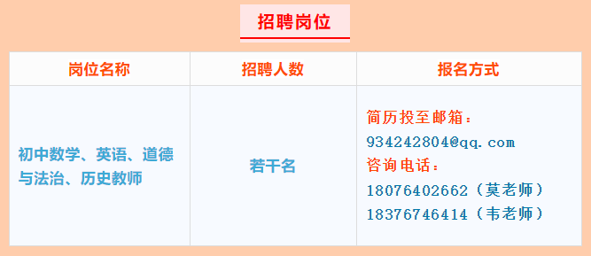 報名實(shí)行網(wǎng)絡(luò )形式,有意者請將簡(jiǎn)歷投至學(xué)校郵箱934242804@qq.com。具體面試時(shí)間電話(huà)通知。