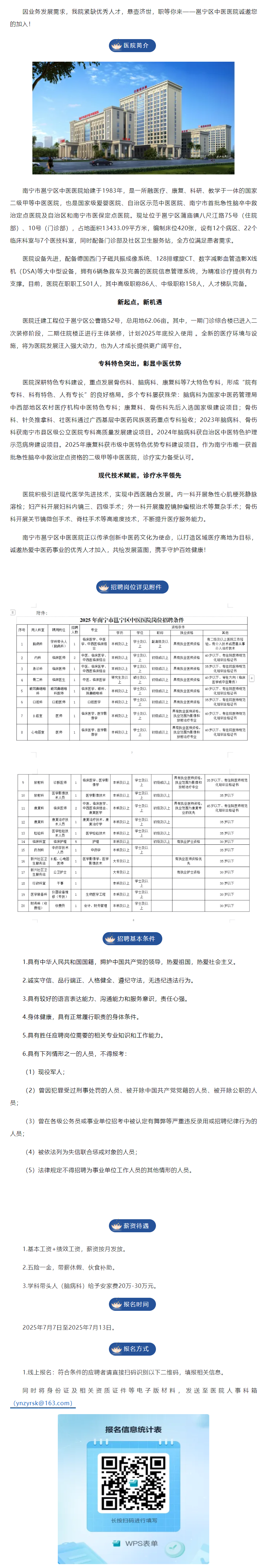 原文標題:南寧市邕寧區中醫醫院2025年公開(kāi)招聘編外人員公告