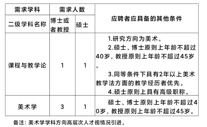 美術(shù)學(xué)院2025年計劃在美術(shù)學(xué)、課程與教學(xué)論(美術(shù))等專(zhuān)業(yè)方向招聘6位專(zhuān)任教師,其中計劃招聘博士或者教授4人,碩士2人。