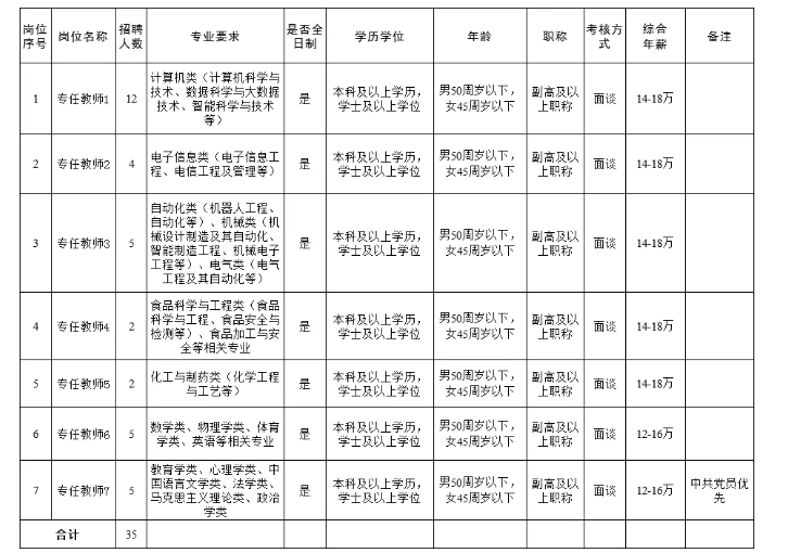 本次公開(kāi)招聘副高及以上職稱(chēng)專(zhuān)任教師共計35名,具體招聘崗位及條件如下: