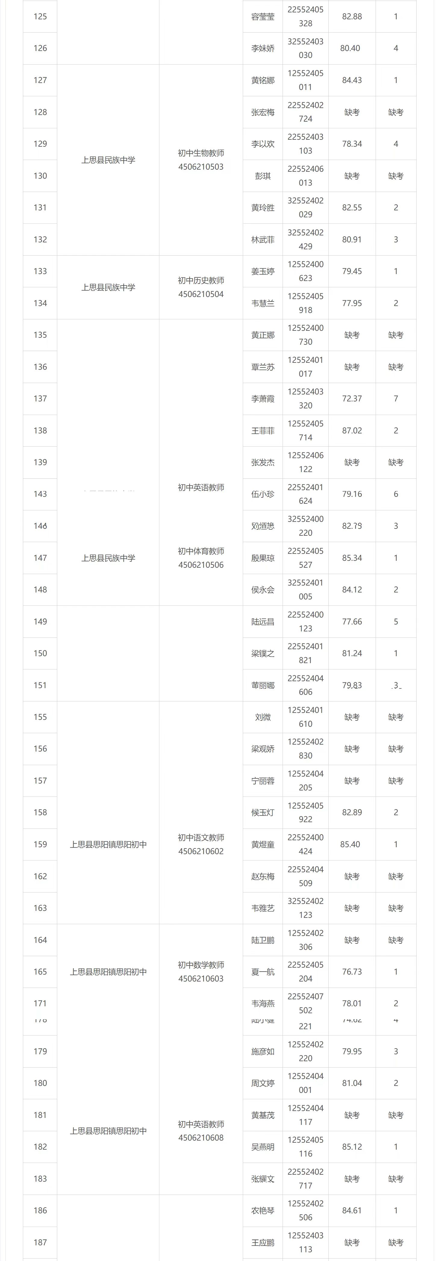 2025年防城港市中小學(xué)教師公開(kāi)招聘面試成績(jì)公布