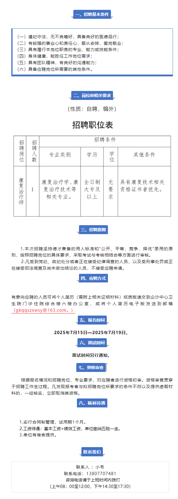 原文標題:港口區企沙中心衛生院招聘康復治療師公告